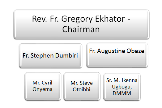| Rev Fr David Ogun, SJ - Chairman Rev Fr Adolphus Umechukwu Dr. Mrs. A.O. Clark Sr. P. Ada, OLA Mrs. Judith Oshomegie Rev Sr. C. Ihekoronze SSH Mrs. Theresa Braimah Sr. Blandina Ryan, MMM Mrs. Regina Aya Mother A. Nwulu DMMM Barr. Chris Inegbezele Mrs. Akpan Chevelier Engr Dr Joe Uujamhan | Rev Fr. Anthony Ekhaisomi - Chairman Very Rev. Fr. Benedict Etafo Rev. Fr. Paschal Omono Mrs. J. Uzzi Sir. Dr. A. A. Ihenyen KSJ Sir Sylvester Egbase KSJ Mr. Alex Izudu Mr. David O. Esizimetor Sr. Christabel Mashuka, OLA Sr. Justine N. Nwankwo, SSH Mr. John Elojie, KSM Mrs G.E. Edosa Mr Iyagbaye | Very Rev Fr Paschal Omono - Chairman Very Rev. Fr. Anthony Ekhaisomi Very Rev. Fr. Michael Oyanoafoh Rev Fr. Patrick Osuide Rev. Fr. Stephen Dumbiri Rev. Fr. Jerome Idebe |